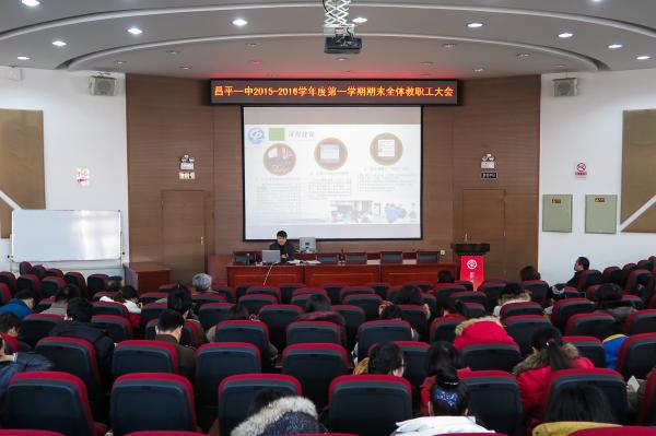 1月22日,昌平一中在阶梯教室召开2015至2016年度第一学期期末全体教职工大会。昌平一中校长林立对我校本学期工作做精炼总结,并重点阐述了“课程建设”、“教师发展”和“学生发展”,对下一阶段的工作也提出了具体要求和新的设想。他首先充分肯定了全体教职工在过去一个学期的辛勤努力和无私奉献,所做工作都极具开创性。经过全体教职工的努力,我校教育教学工作可谓硕果累累,成绩显著,不仅得到了上级领导的高度评价,也得到了社会的普遍赞誉。他指出,我们能在短短的时间内取得丰硕的办学成果,就是得益于“一中精神”的存在,那就是“责任”、“素养”和“效率”。他希望在我校取得骄人成绩的同时,能够乘势而上,追求卓越,继续保持昂扬向上的发展势头。他最后希望全体教职工在假期中,不忘提升自身专业素质,共同谋划学校的发展大计,度过一个平安、健康、有意义的假期。
